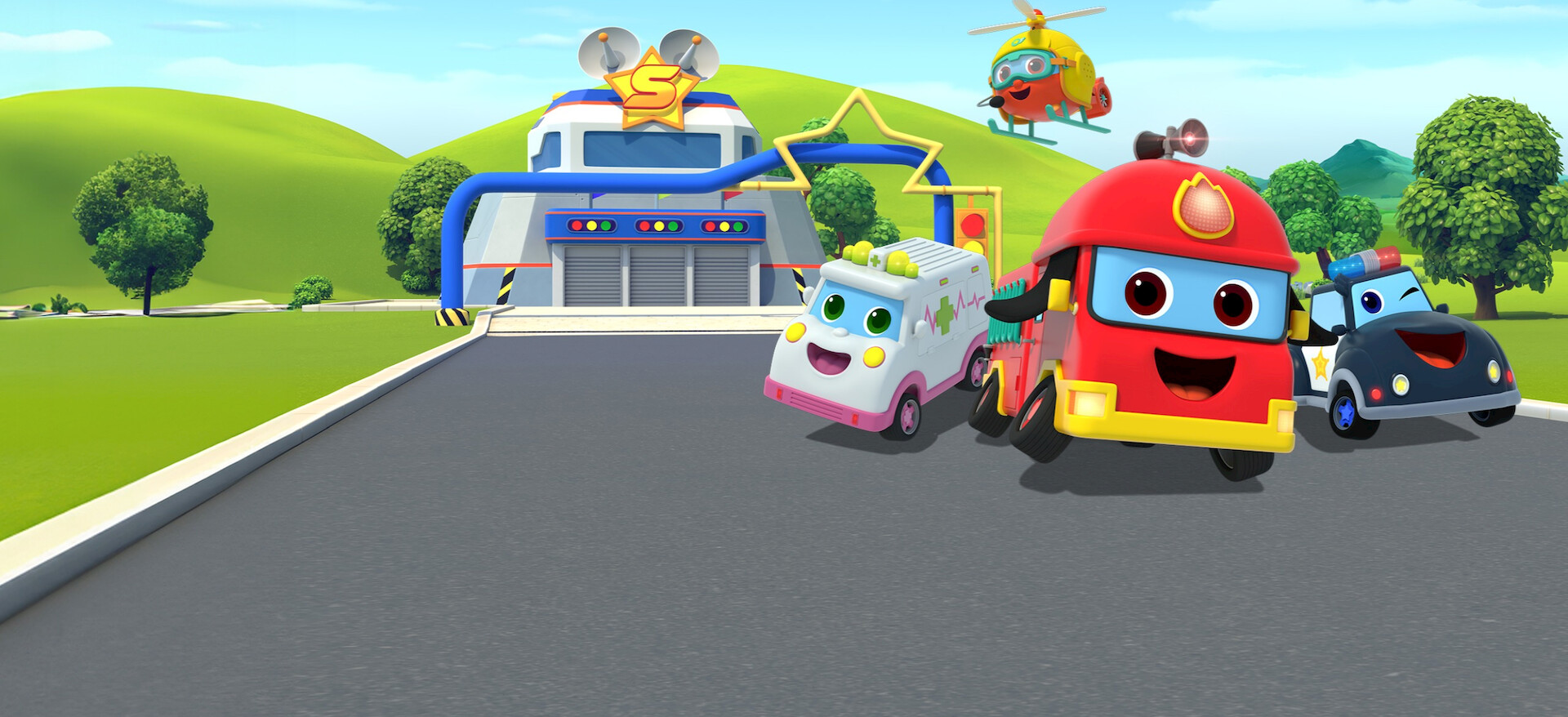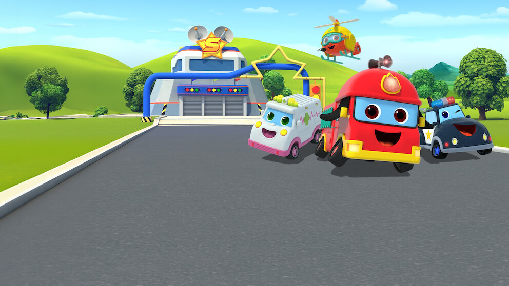 The Super Rescue Team is always on call. If there's a problem, Ready the Fire Truck and Roger the Police Car will keep the town safe!